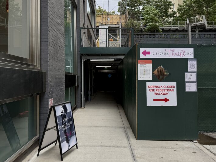 The building of a new staircase on West 26th Street and 10th Avenue began in September. But the entrance to the City Opera Thrift Shop – a longtime store that raises money for the New York City Opera – is located directly beneath the construction site. Now the staff, concerned that the obstructed views will mean fewer customers, is seeking ways to mitigate a potential loss in revenue.